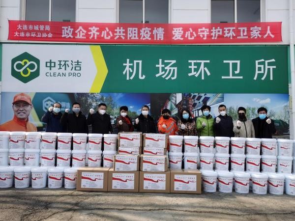 2月18日,大連市城管局、大連市環(huán)衛(wèi)協(xié)會、中環(huán)潔環(huán)境有限公司共同舉行“政企齊心共阻疫情,愛心守護(hù)環(huán)衛(wèi)家人”防疫物資捐贈儀式,由市內(nèi)四區(qū)環(huán)境衛(wèi)生主管部門代表現(xiàn)場領(lǐng)取,隨后分發(fā)到各區(qū)環(huán)衛(wèi)工人手中。