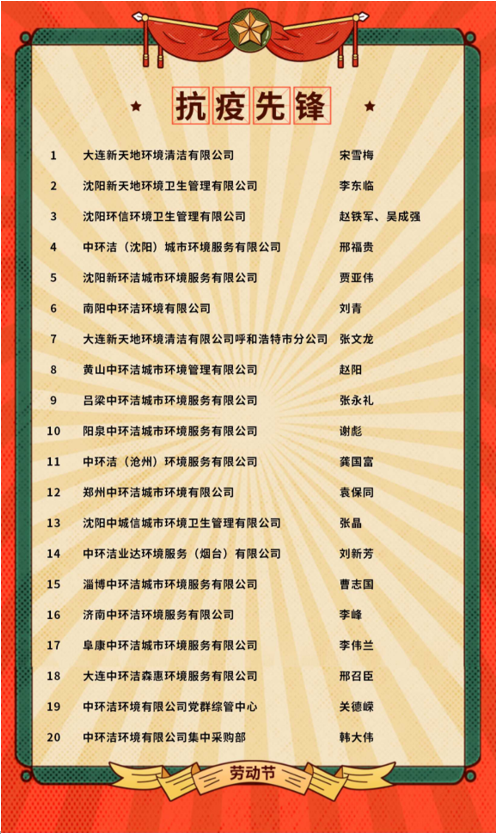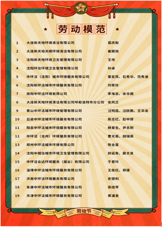 勞模是一個飽含感情的符號,是一種積極向上的力量。為鼓勵員工勤勞奮進、務實創(chuàng)新,充分發(fā)揮模范帶頭作用,調(diào)動全體員工的積極性和創(chuàng)造性,中環(huán)潔開展評選勞動模范及抗疫先進個人、先進班組活動。中環(huán)潔勞模們在他們工作崗位的一片天地里,用他們的堅守、擔當和智慧,贏得贊譽和尊重。他們是中環(huán)潔環(huán)衛(wèi)人學習的榜樣,他們用平凡成就美好。