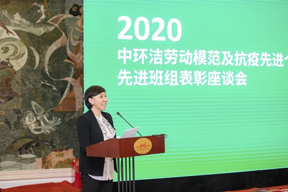 隨后,陳黎媛總經(jīng)理發(fā)表講話,她首先對(duì)受到表彰的先進(jìn)集體和個(gè)人表示祝賀,并向辛勤工作在中環(huán)潔各條戰(zhàn)線、各個(gè)崗位上的廣大員工,致以崇高的敬意和衷心的感謝。陳黎媛表示,疫情之下,萬城空巷,是我們一線環(huán)衛(wèi)工人在守護(hù)著城市和鄉(xiāng)村的環(huán)境,成為“最美逆行者”;當(dāng)疫情越來越緊張時(shí),又是我們一線環(huán)衛(wèi)工人挺身而出,擔(dān)負(fù)洗消滅殺的重任,一個(gè)個(gè)黨員先鋒崗、一個(gè)個(gè)抗疫突擊隊(duì)、一個(gè)個(gè)抗疫志愿者奮戰(zhàn)在各地中環(huán)潔項(xiàng)目公司,你們用實(shí)際行動(dòng)擔(dān)起了中環(huán)潔企業(yè)的社會(huì)責(zé)任,交上了合格答卷。愛崗敬業(yè)、甘于奉獻(xiàn)”的勞模精神,是社會(huì)主義核心價(jià)值觀在廣大勞動(dòng)者中的具體體現(xiàn)和生動(dòng)實(shí)踐,我們每一位中環(huán)潔一線員工都是當(dāng)之無愧的勞動(dòng)模范。 最后,陳黎媛要求各投資企業(yè)要開展向勞模和先進(jìn)學(xué)習(xí)活動(dòng),要站在總部的高度來認(rèn)識(shí)和對(duì)待這項(xiàng)工作,要廣泛宣傳勞動(dòng)模范和先進(jìn)工作者的先進(jìn)事跡、優(yōu)秀品質(zhì)、高尚精神,給他們以應(yīng)有的榮譽(yù)和獎(jiǎng)勵(lì),以此推動(dòng)中環(huán)潔尊重勞模、學(xué)習(xí)勞模、爭(zhēng)當(dāng)勞模,讓勞模精神不斷發(fā)揚(yáng)光大。